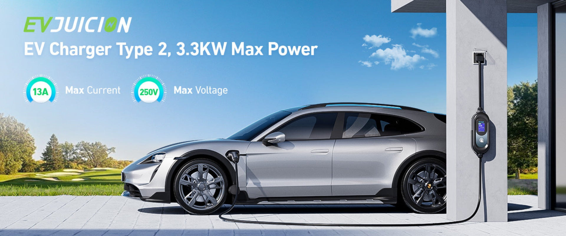 EVJUICION EV Charger Type 2 to 3 Pin Plug, 10A Electric Car Charger, Max. 2.3kW Type 2 EV Charging Cable with LED Indicators&Carry Bag, for Type 2 EVs and PHEVs